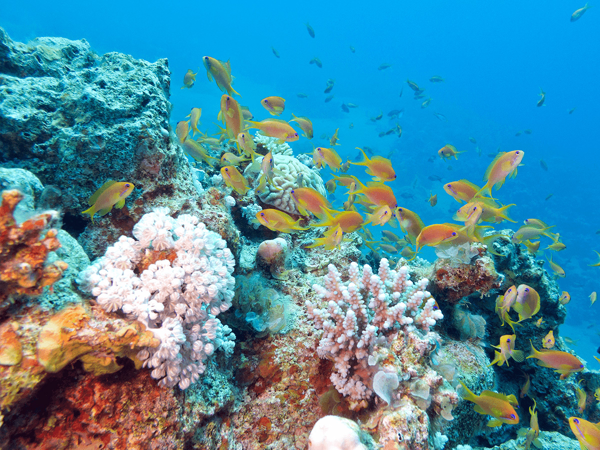 Staying on an atoll encircled with blue-green seas means that visitors remain closely connected to nature. Underwater, snorkelers and scuba divers from around the globe are mesmerized by the spectacular, extensive coral gardens and open seas that are inhabited with over 2,000 species of colourful fish.Highly-rated dive sites include: Fotteyo Kandu at Vaavu Atoll where caves, overhangs and swim-throughs are filled with coral bushes; Okobe Thila at North Male Atoll where tuna, white-tip reef sharks and banner fish abound; Kandooma Thila at South Male Atoll where grey sharks, white-tip sharks and eagle rays converge regularly.