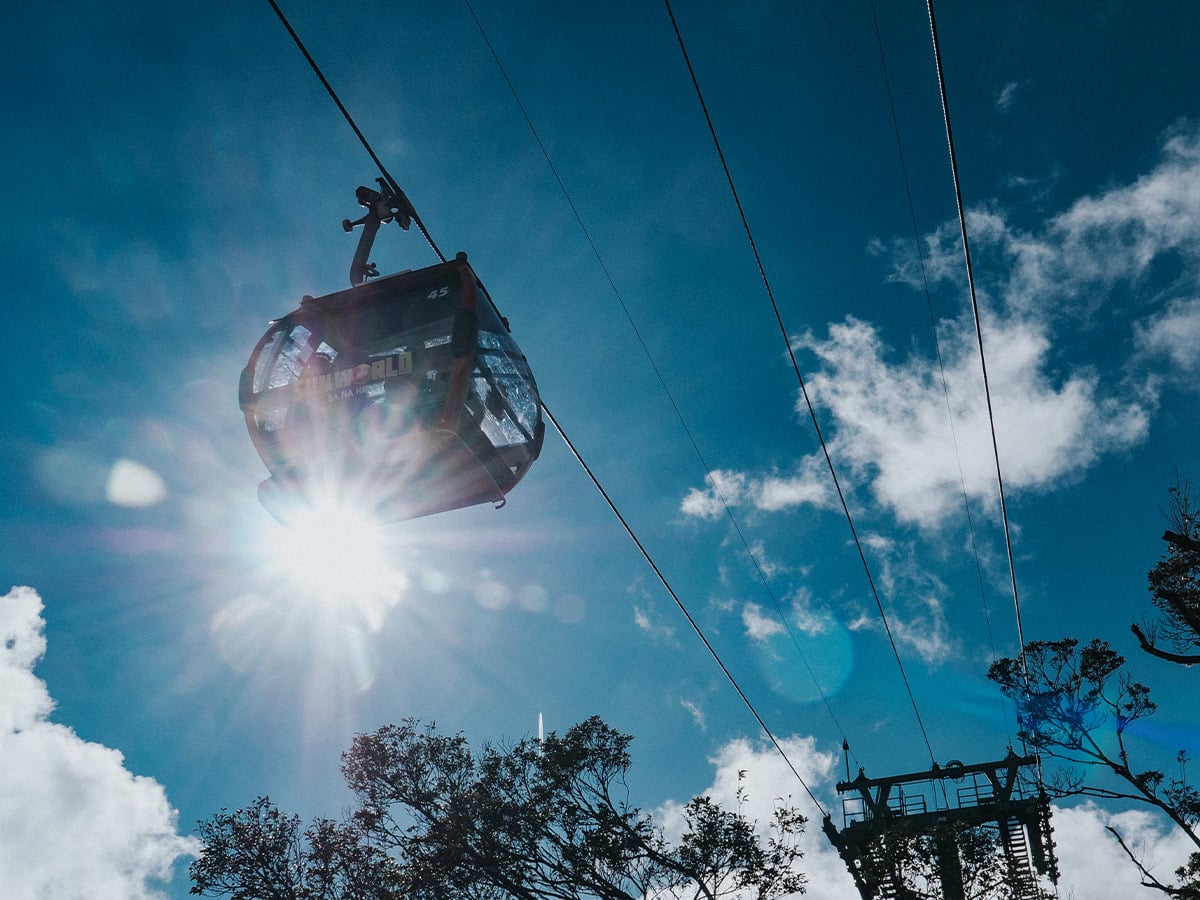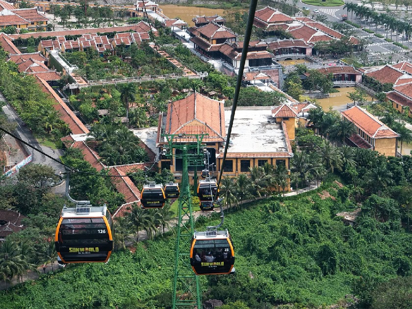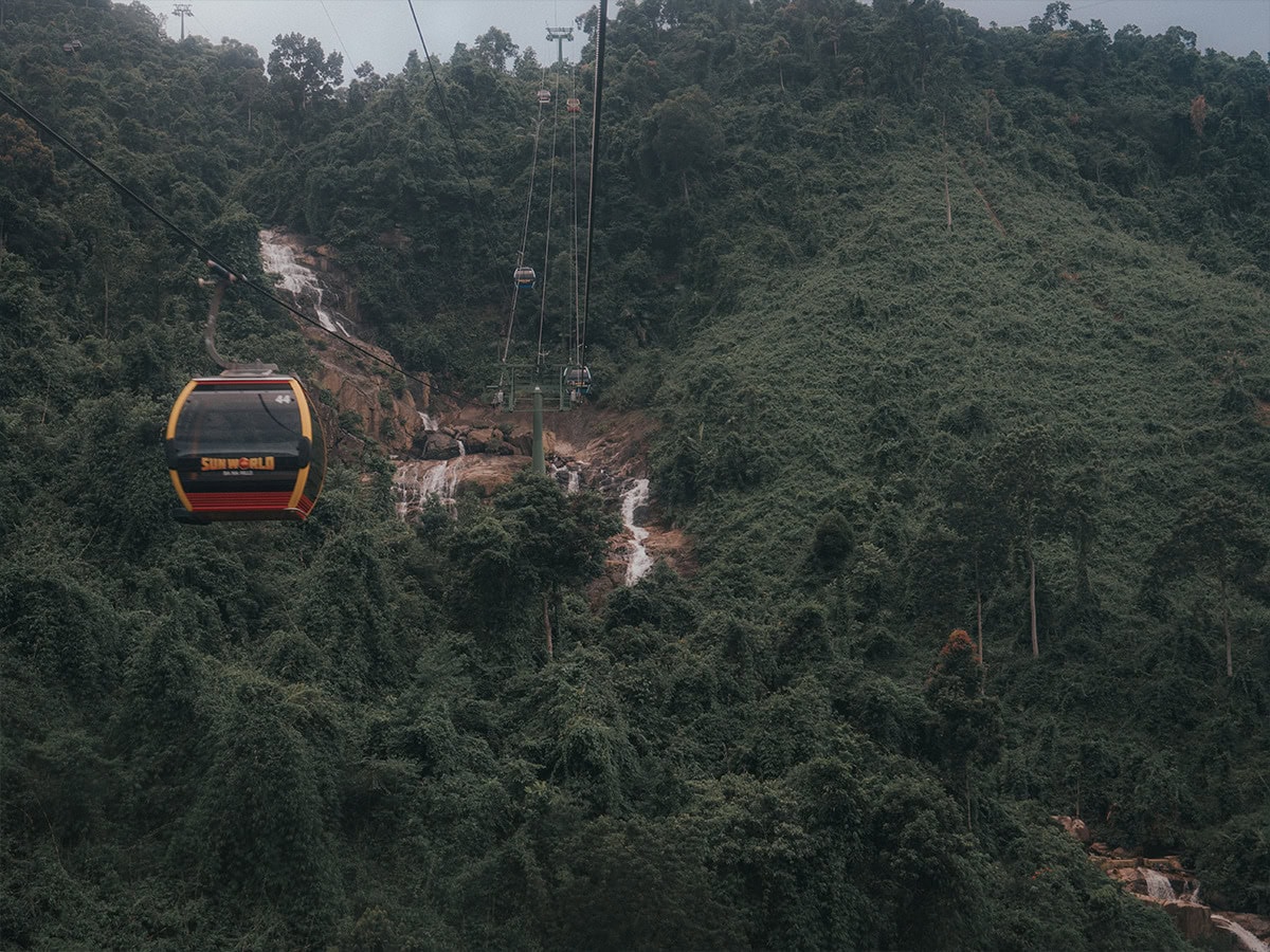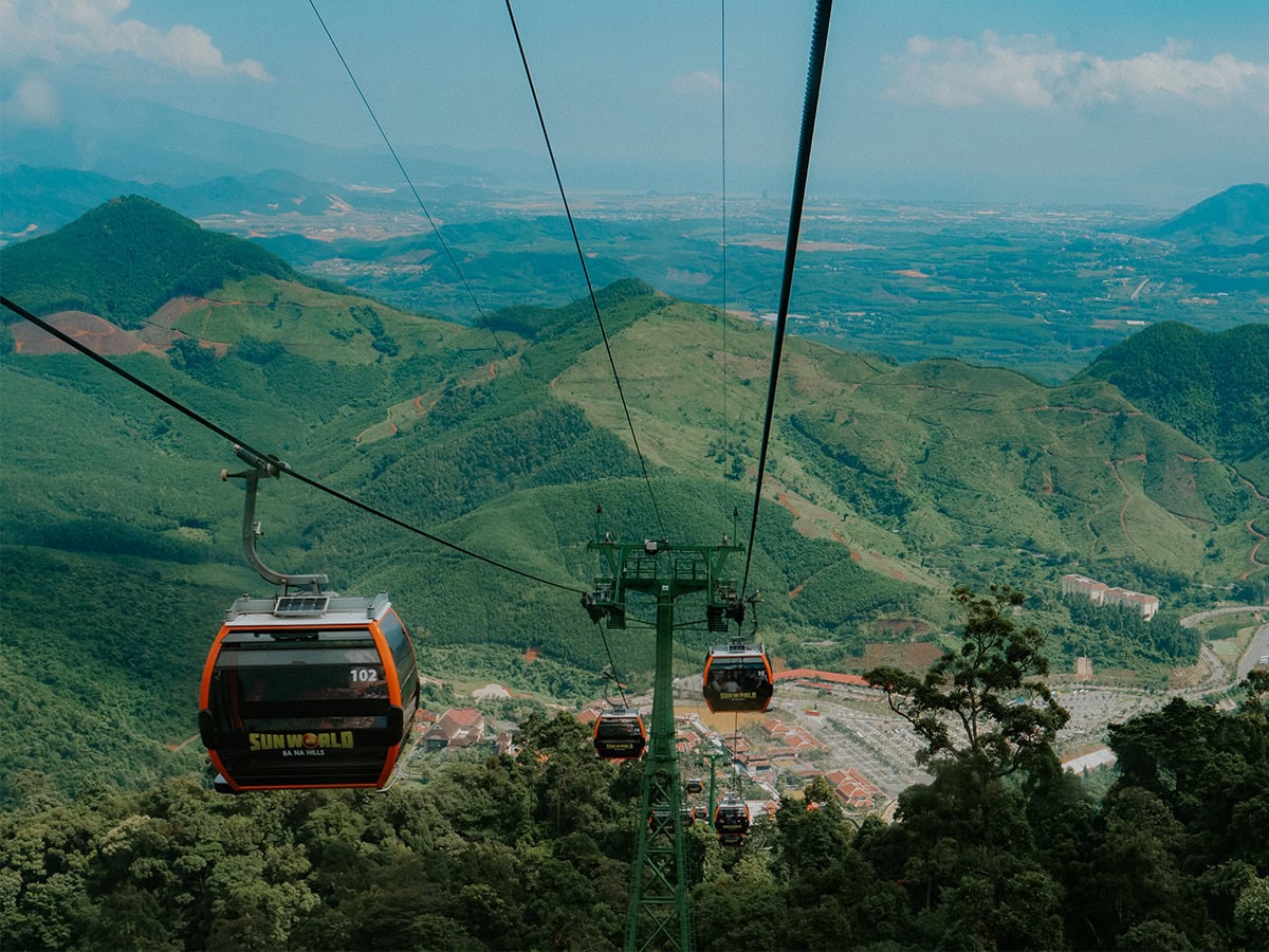 Float in the air with spectacular view from a cable car in Danang.