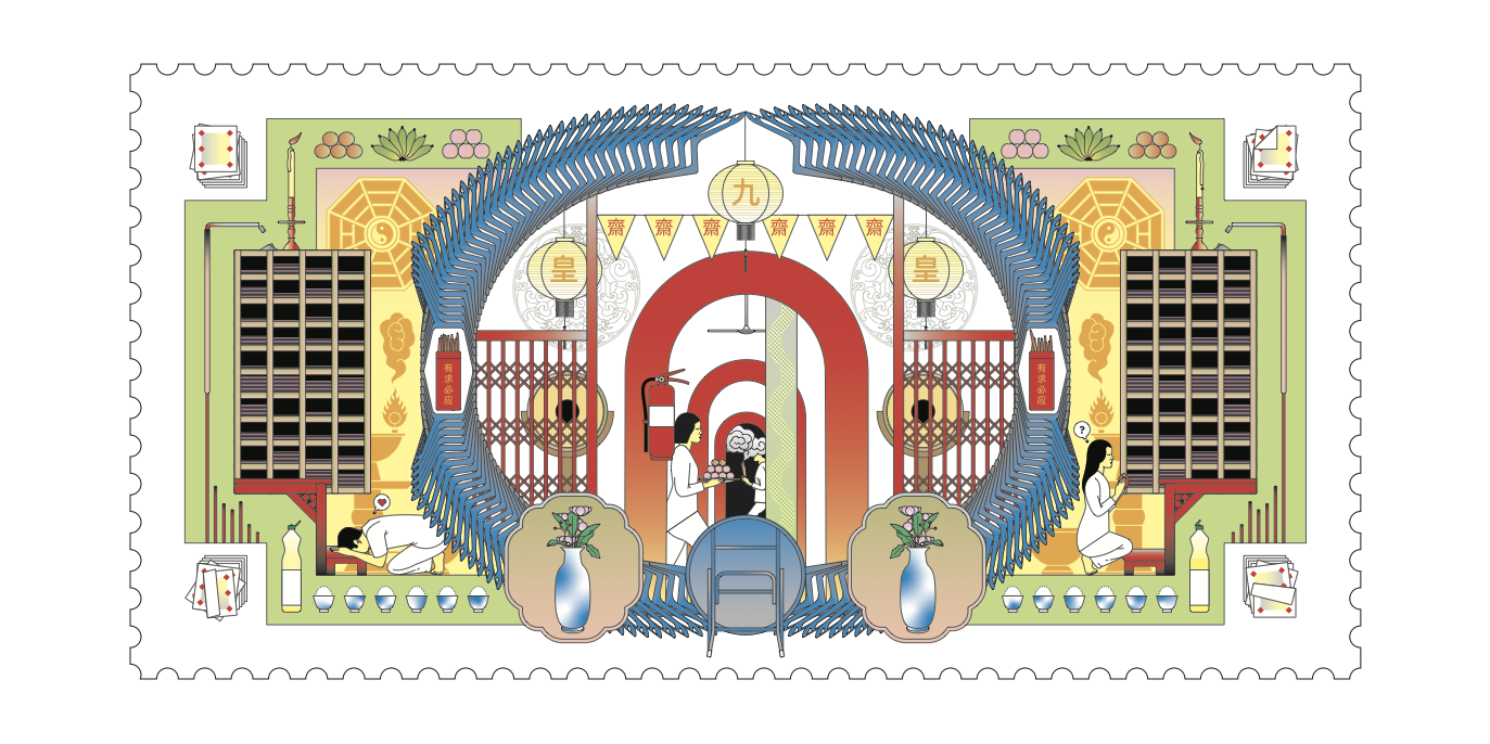 สไตล์และชุดสีที่ใช้ในงานนี้ได้แรงบันดาลใจมาจากภาพวาดรูปหนึ่งบนผนังในศาลเจ้าโจวซือกงขณะที่กำลังสำรวจสิ่งต่างๆ ที่พบในบริเวณวัด ถึงจะเป็นรูปที่ไม่โดดเด่นแต่พอเห็นแล้วอยากอย่างไม่มีเหตุผล จึงเริ่มวาดองค์ประกอบแรกของงานจากรูปนั้น และส่วนประกอบอื่นๆ ที่เหลือก็ตามมาจนเสร็จสมบูรณ์